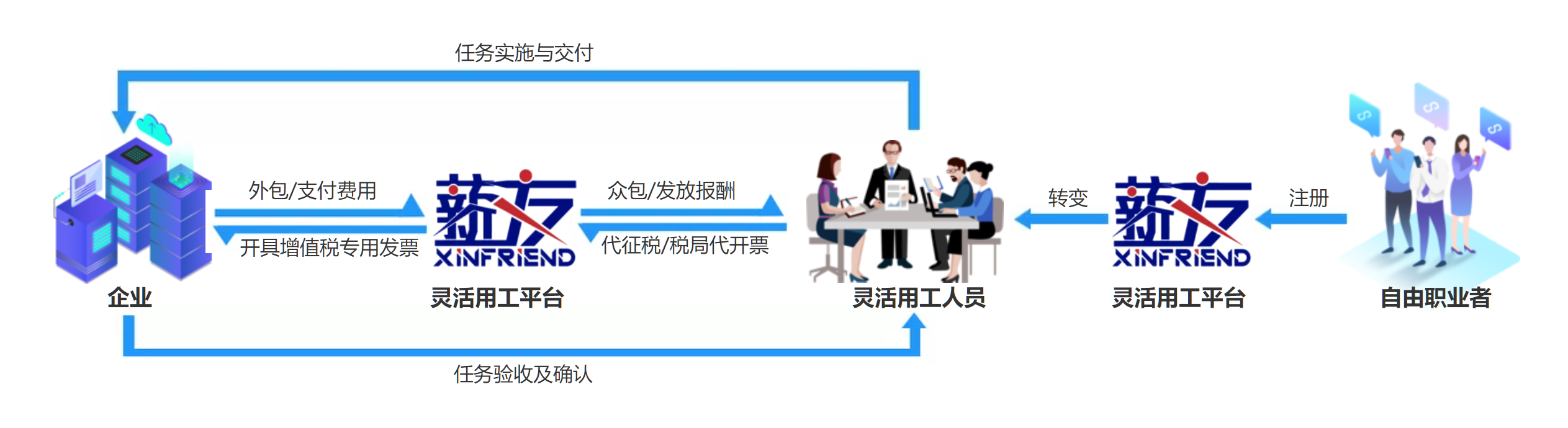 报酬发放+个税申报一体化处理,通过传统用工关系的转变,满足了企业更为灵活的业务需求,为用工企业提供一站式企业成本优化综合服务,有效降低了用工成本和税收成本,规避风险。